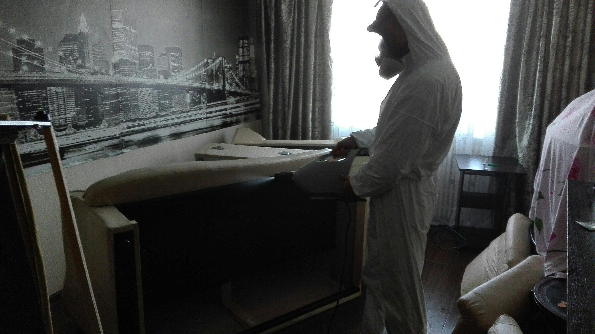 При обработке от клопов нашей санитарной компанией в Кирове, специалисты — дезинсекторы обрабатывают инсектицидами места их обитания (кровати, диваны, обратную сторону околокроватных ковров) и места возможного расселения (щели вдоль плинтусов, бордюров, места отхождения обоев, вокруг дверных и оконных проемов, под подоконниками, вокруг вентиляционных решеток, щели в стенках мебели, ковры и картины с обратной стороны, сухую штукатурку при облицовке ею стен).